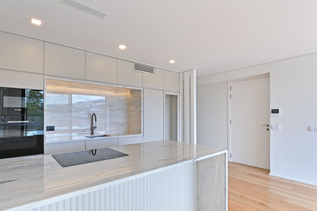 Strefa dzienna została zaprojektowana tak, aby sprzyjała wspólnym chwilom z rodziną i przyjaciółmi. Dzięki bezpośredniemu wyjściu z salonu na balkon można cieszyć się spokojem i wyjątkową panoramą Guimarães oraz okolicznego krajobrazu.