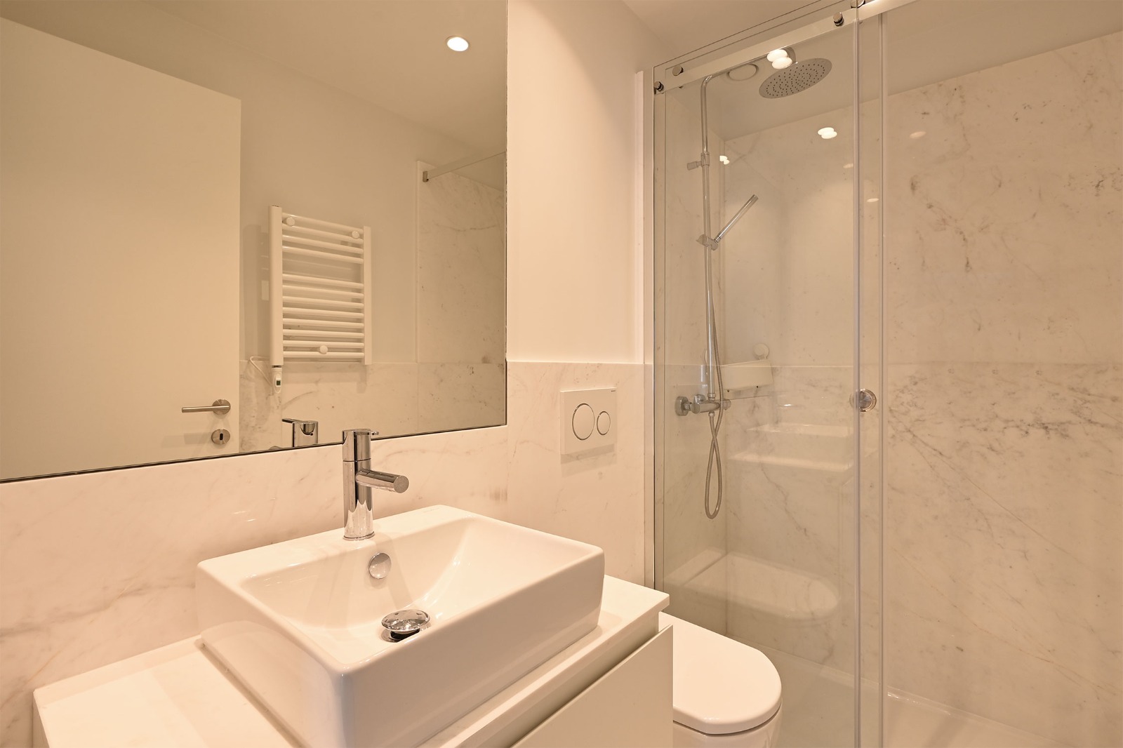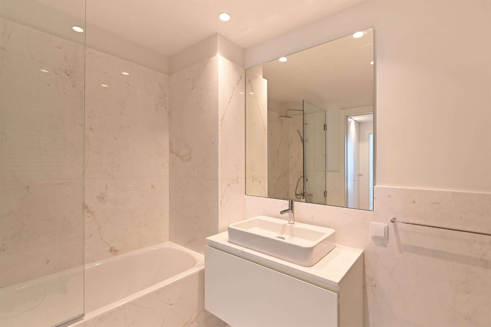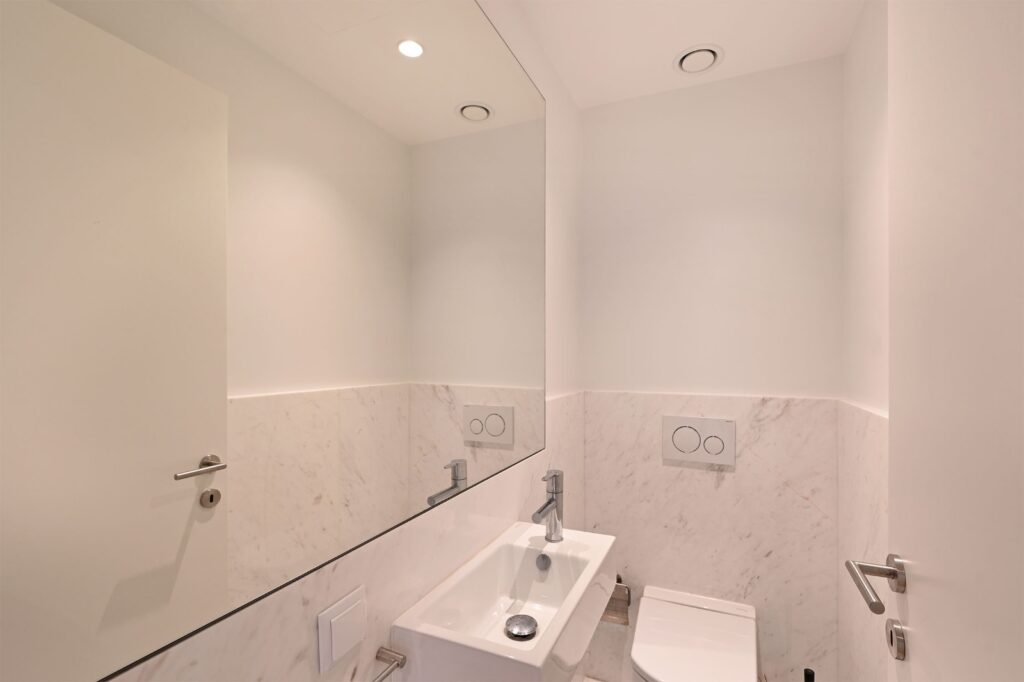 - 2 nowoczesnych łazienek wykończonych marmurem Alpenina,