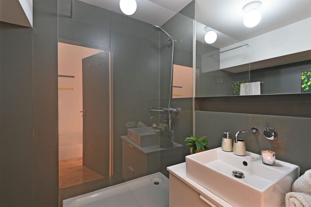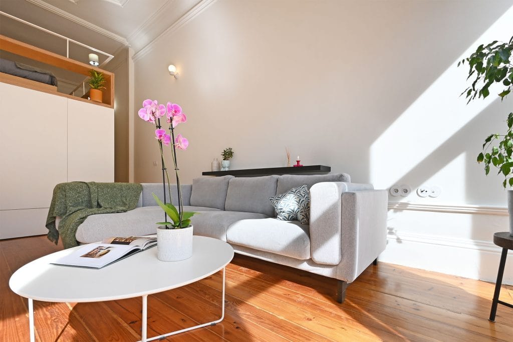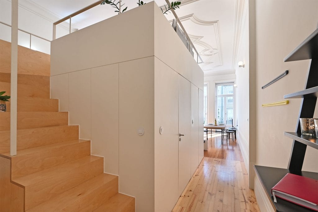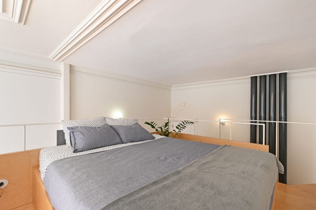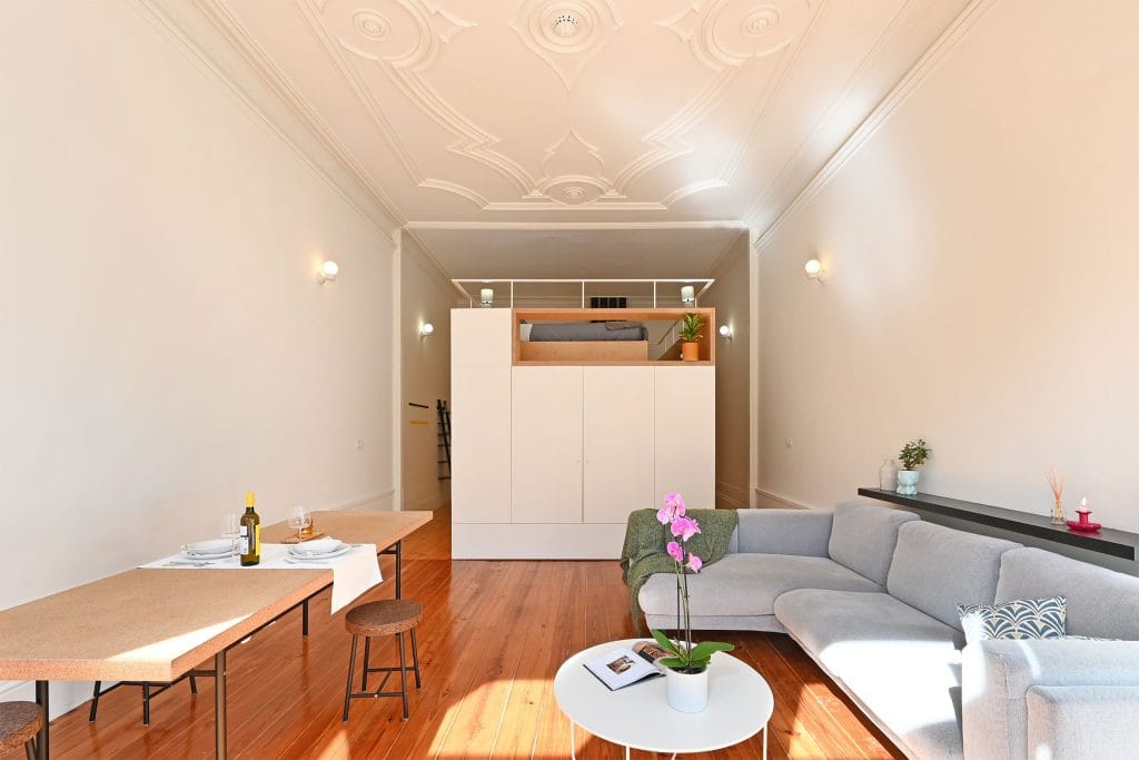 Kawalerka do wynajęcia w Porto oferuje komfortowe warunki dzięki wysokim sufitom, które umożliwiają swobodne poruszanie się po antresoli. Posiada łóżko małżeńskie oraz dodatkowe łóżko pojedyncze, idealne na wizyty gości lub dla pary ceniącej przestrzeń. Apartament zaskakuje ilością miejsca do przechowywania oraz inteligentnymi rozwiązaniami przestrzennymi, które sprawiają, że każda część mieszkania jest funkcjonalna. Łazienka wyposażona jest w dużą kabinę prysznicową, zapewniającą codzienny komfort. Kuchnia, będąca częścią otwartego planu mieszkania, posiada piekarnik, płytę grzewczą, lodówkę z zamrażarką oraz nowoczesną pralko-suszarkę, co czyni ją idealnym miejscem zarówno dla osób gotujących w domu, jak i dla tych, którzy cenią wygodę.