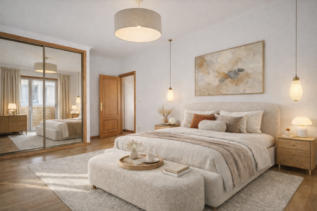 ✔ Trzy przestronne sypialnie, wszystkie z wbudowanymi szafami dla optymalnej organizacji przestrzeni.
