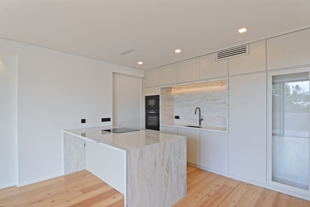 A área social foi projetada para proporcionar momentos únicos em família ou com amigos. O acesso direto da sala à varanda permite desfrutar de um ambiente tranquilo e exclusivo, com uma perspetiva privilegiada sobre Guimarães e a envolvente natural.