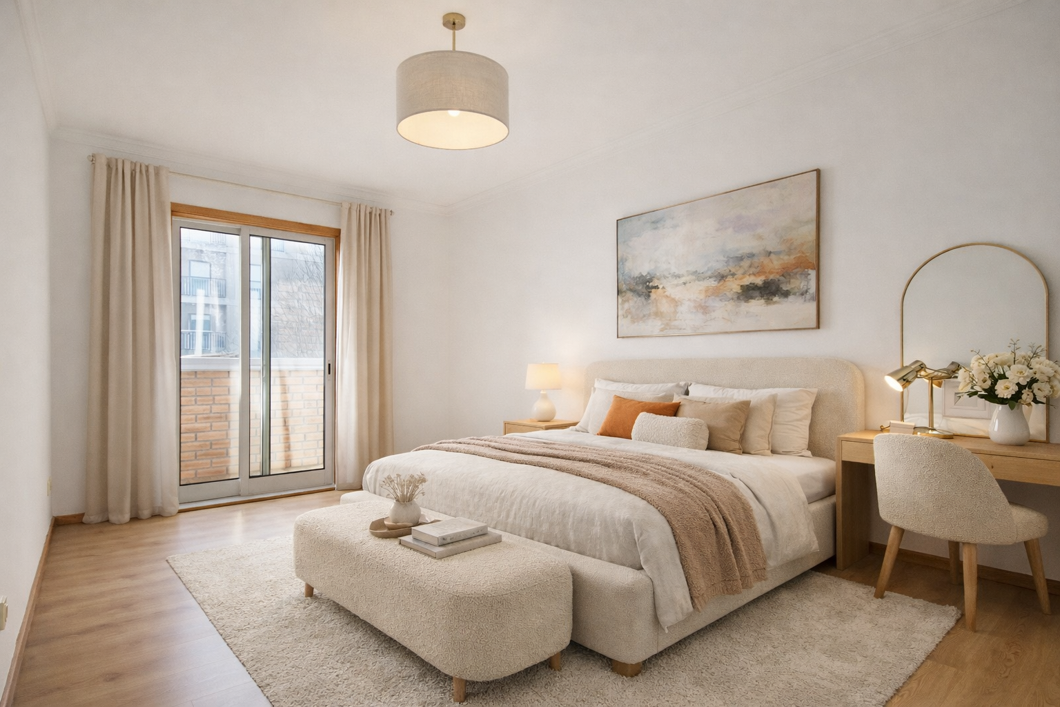 ✔ Soalho de madeira, conferindo um ambiente acolhedor e elegante.