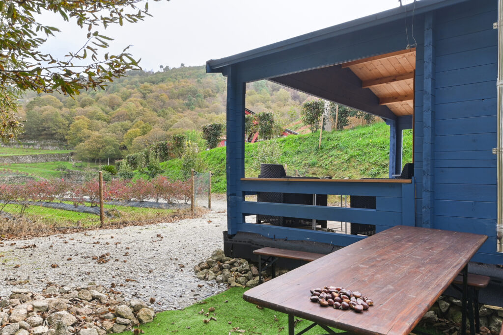 A Quinta Fraguil possui ainda duas casas de madeira idênticas, situadas entre castanheiros, que garantem total privacidade:
