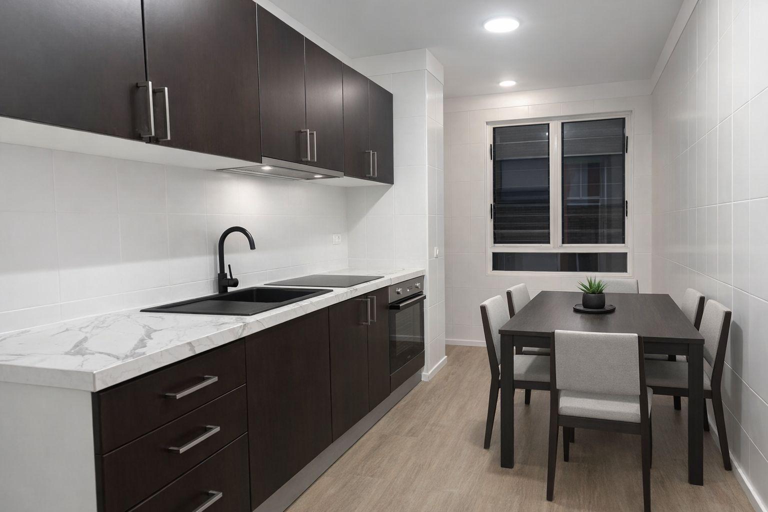 The kitchen will be equipped with a hob, oven and extractor fan, offering a functional and contemporary space ideal for everyday life. It also includes a separate laundry area, a practical solution that adds organization and convenience to the daily routine.