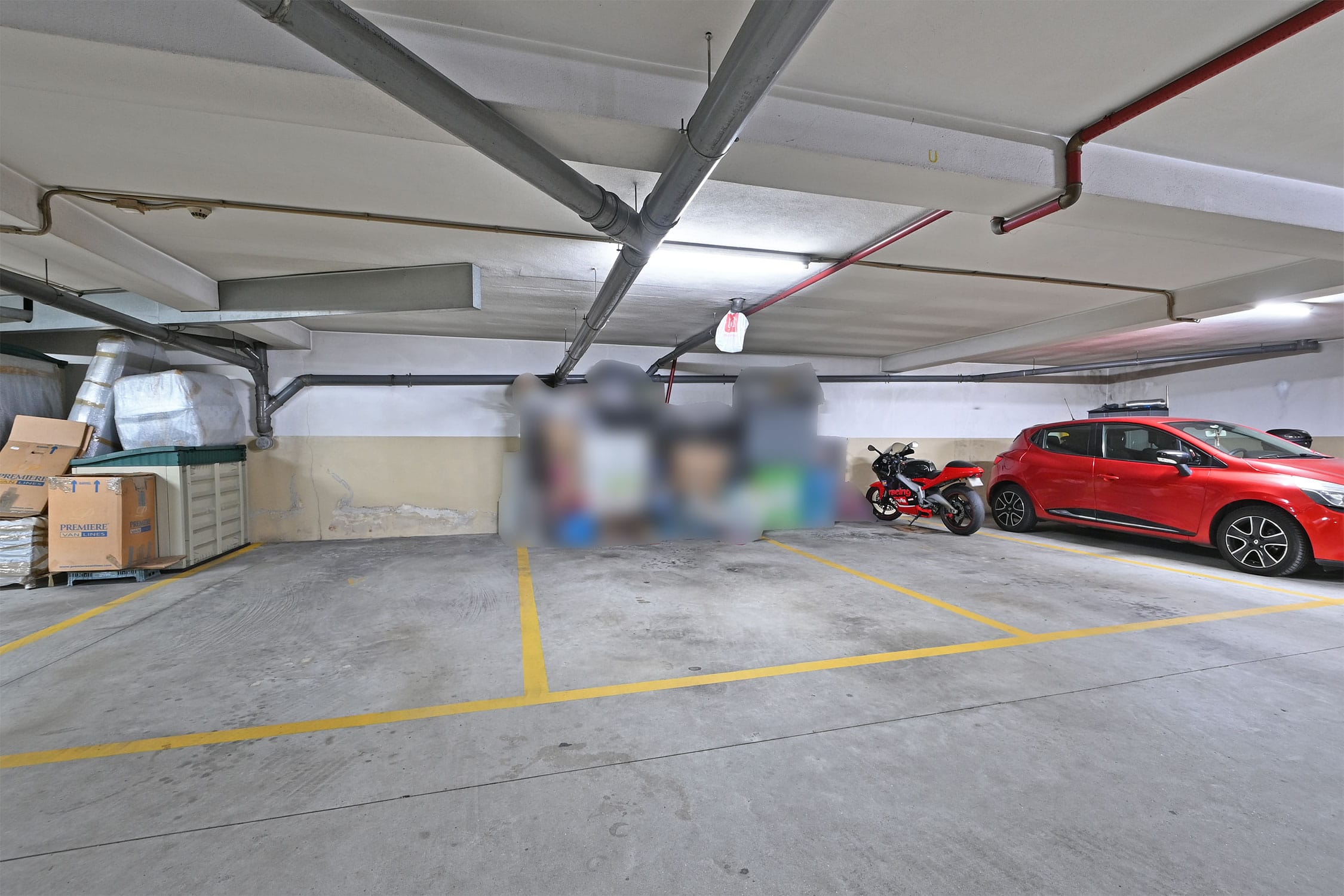 The interior is in excellent condition, featuring solid wood flooring, double-glazed windows for thermal and acoustic insulation, and a natural gas heating system with a boiler replaced recently. The well-maintained building includes two elevators, private parking, and a low condo fee.