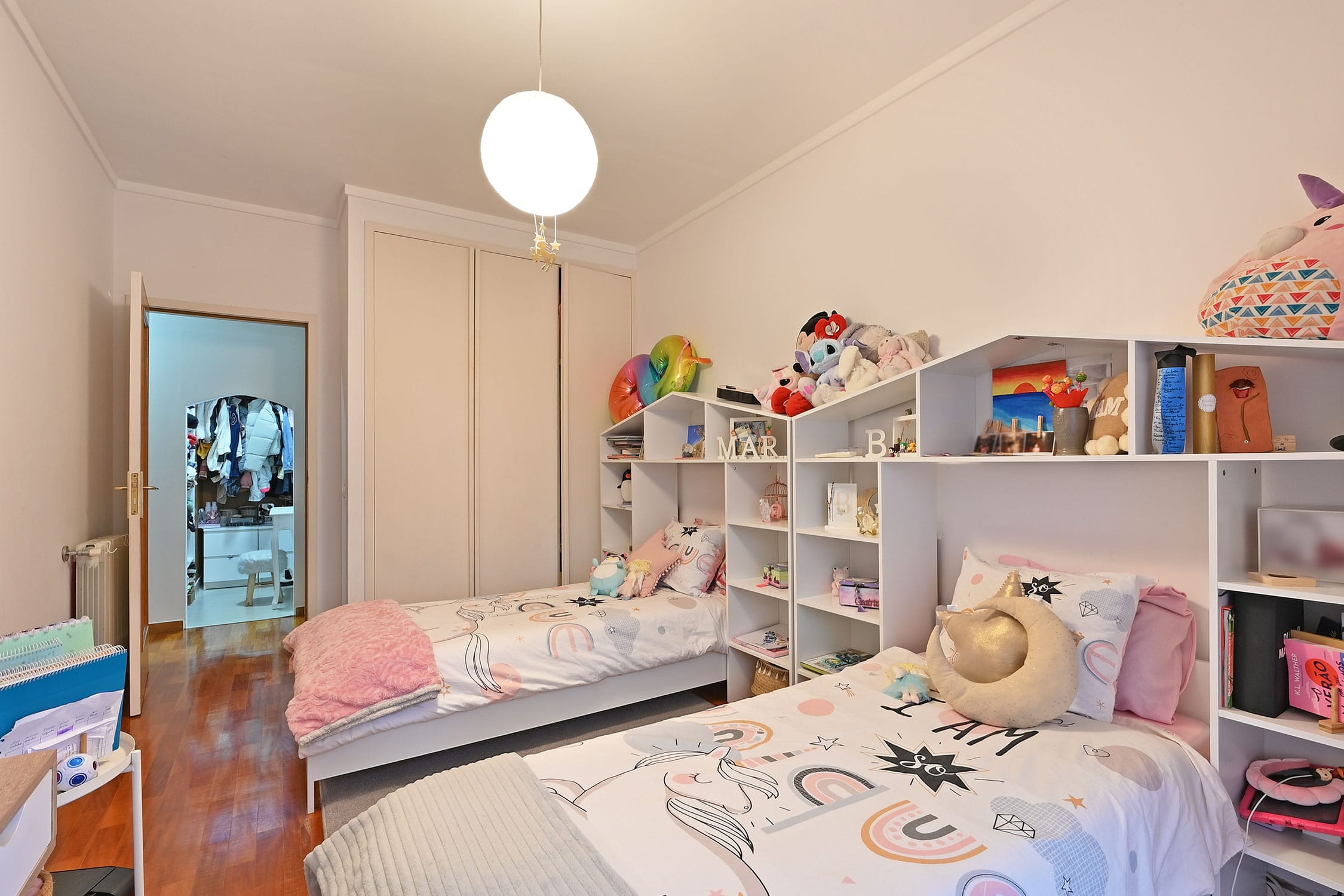Both bedrooms have access to a second terrace, oriented to the northeast, ensuring privacy and peace. An additional “+1” room has been transformed into a functional closet, enhancing the practicality of the space. Additionally, the apartment features two bathrooms – one with a bathtub and another with a shower.