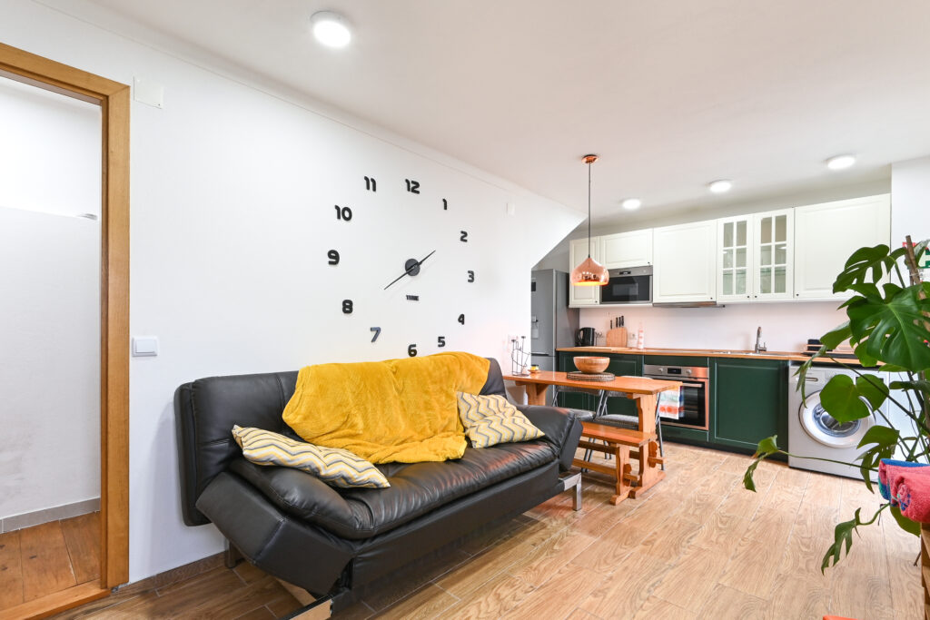 • First level: living room with fireplace, open kitchen, spacious bedroom with en-suite bathroom