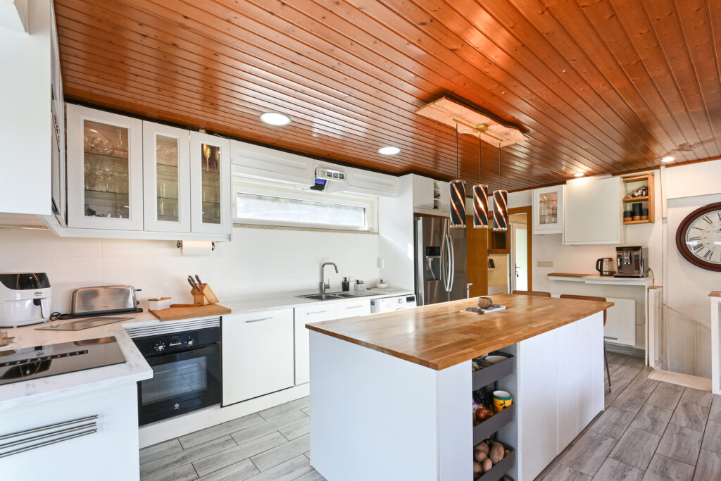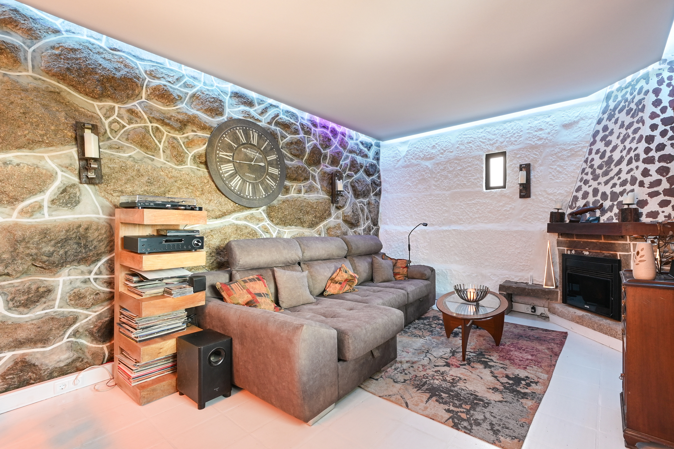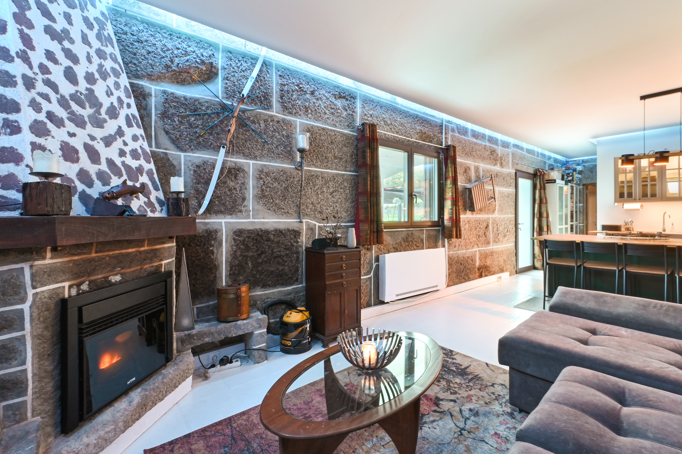 • First level: living room with fireplace, open kitchen, spacious bedroom with en-suite bathroom