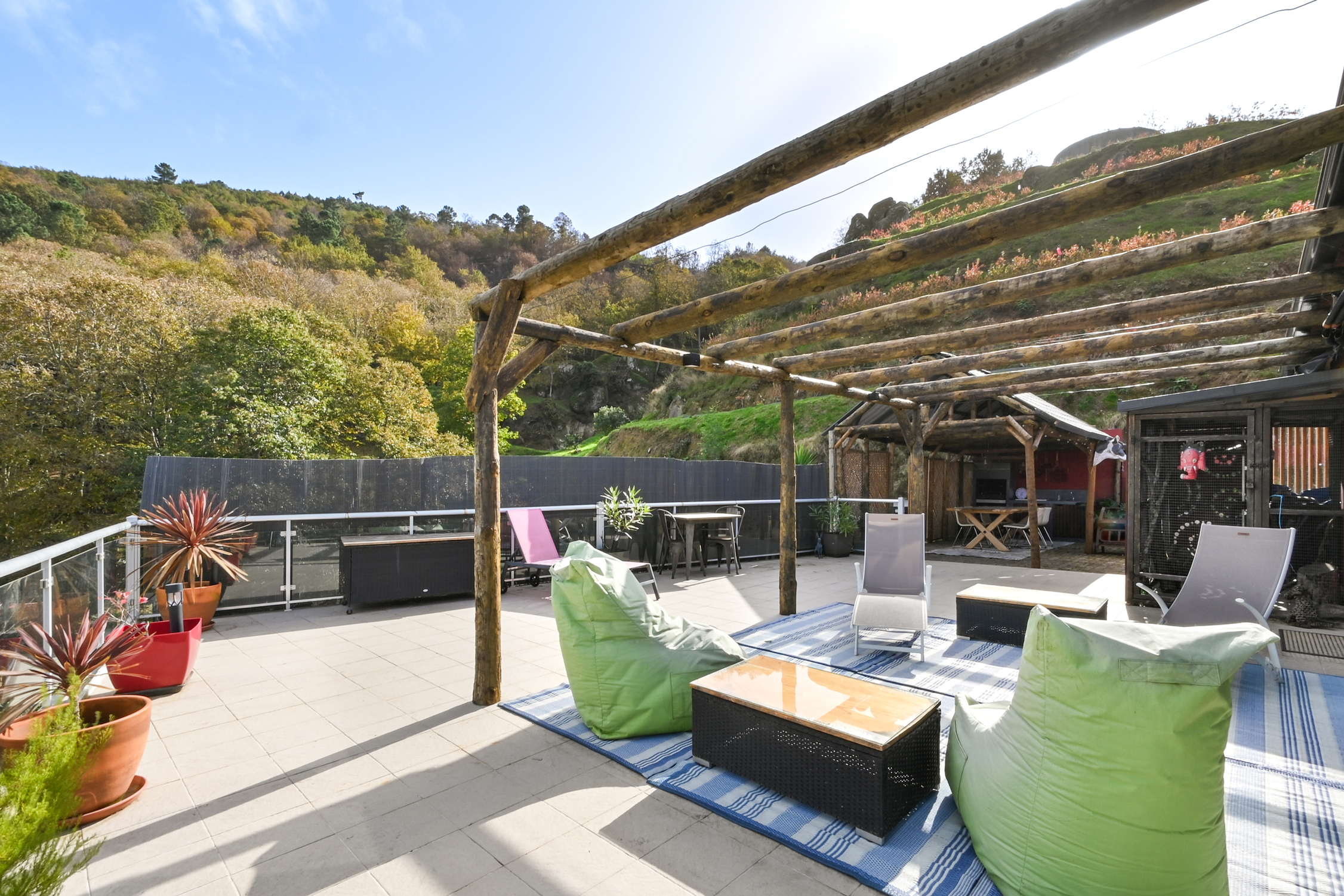 • Second level: bedroom with valley views, fully equipped bathroom, living and dining room with kitchen