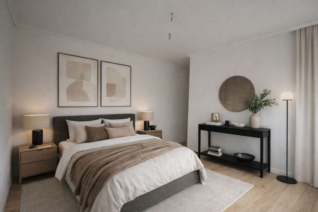 - white walls and a clean, timeless aesthetic,