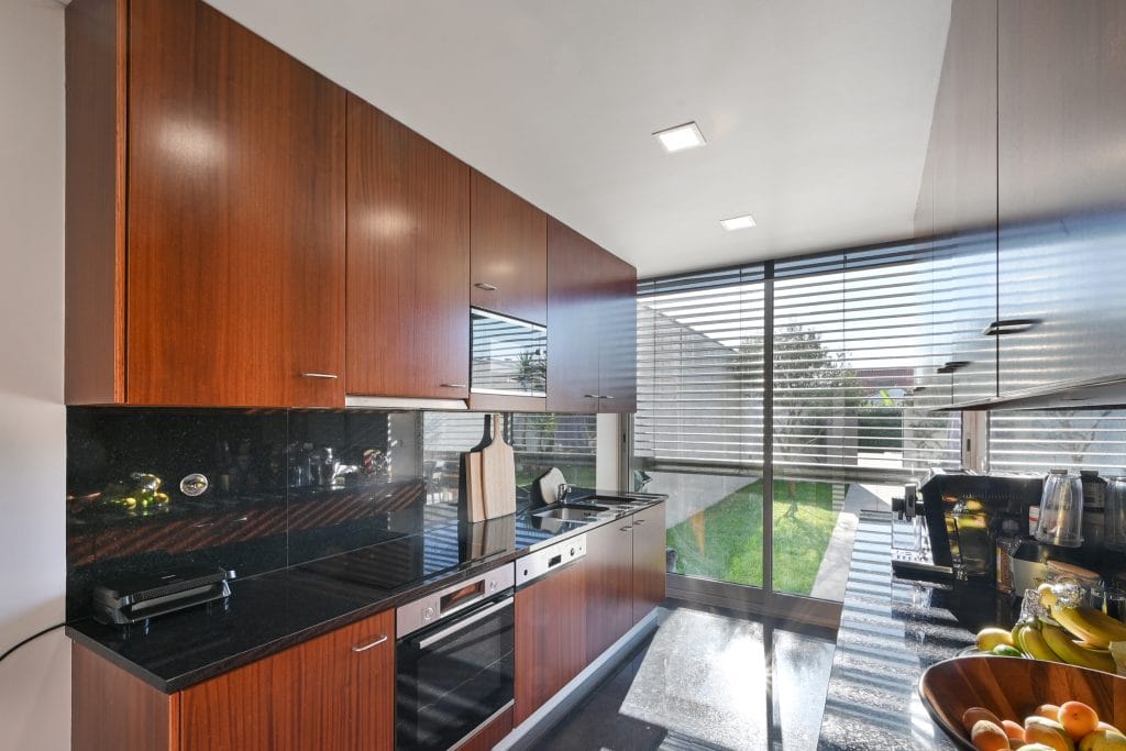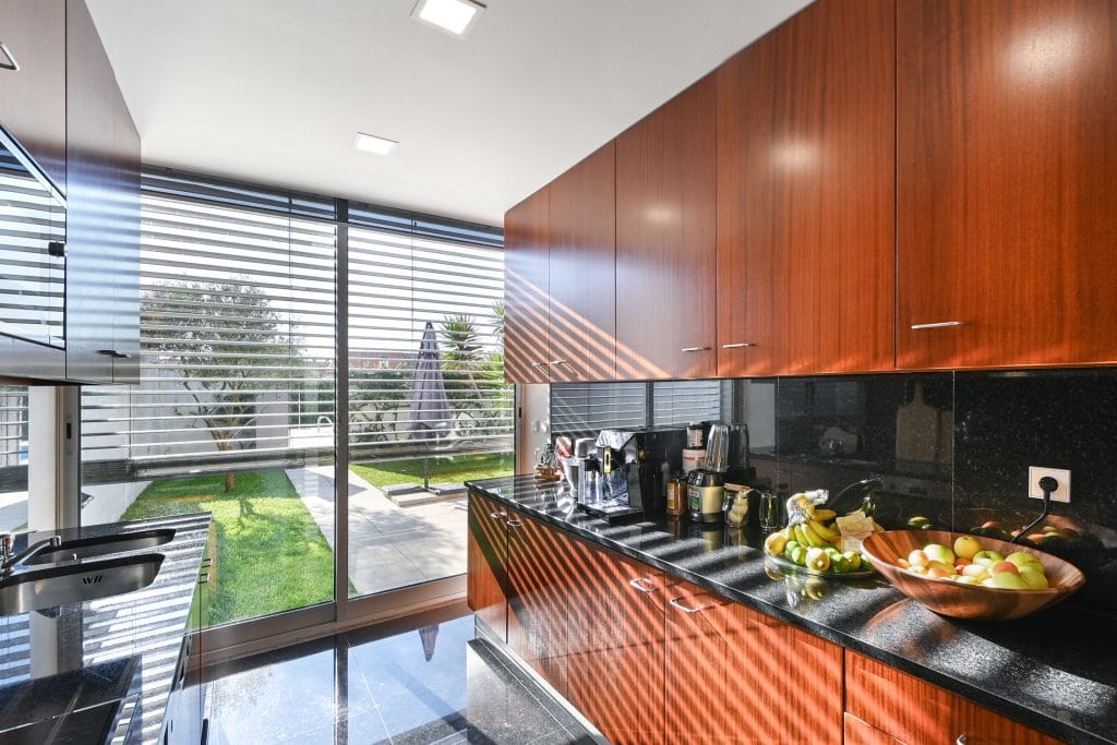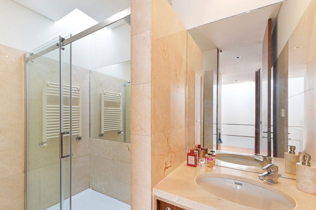 The modern and functional kitchen is fully equipped, offering everything needed to prepare meals with ease and refinement. The bathrooms stand out with their natural stone finishes, creating a luxurious environment, and the high-quality showers ensure comfort. Every detail has been considered to provide a sophisticated experience, including built-in wardrobes and full-height doors that add elegance and practicality to the townhouse.