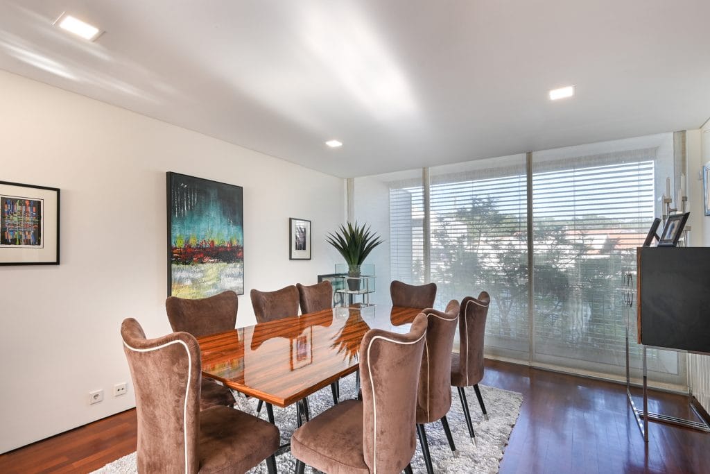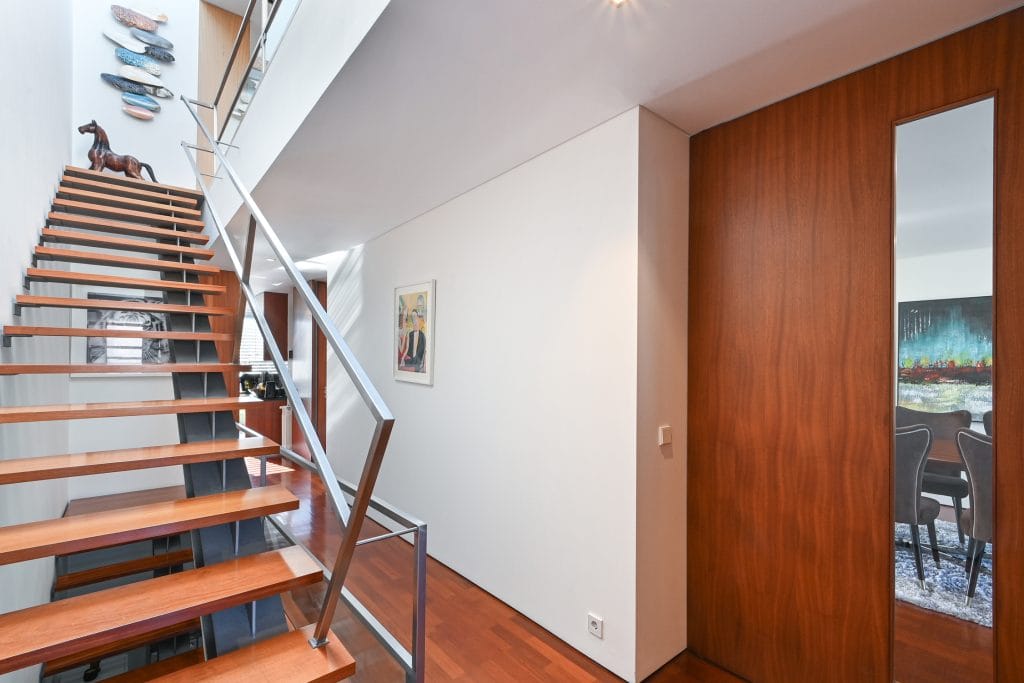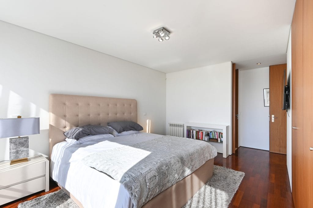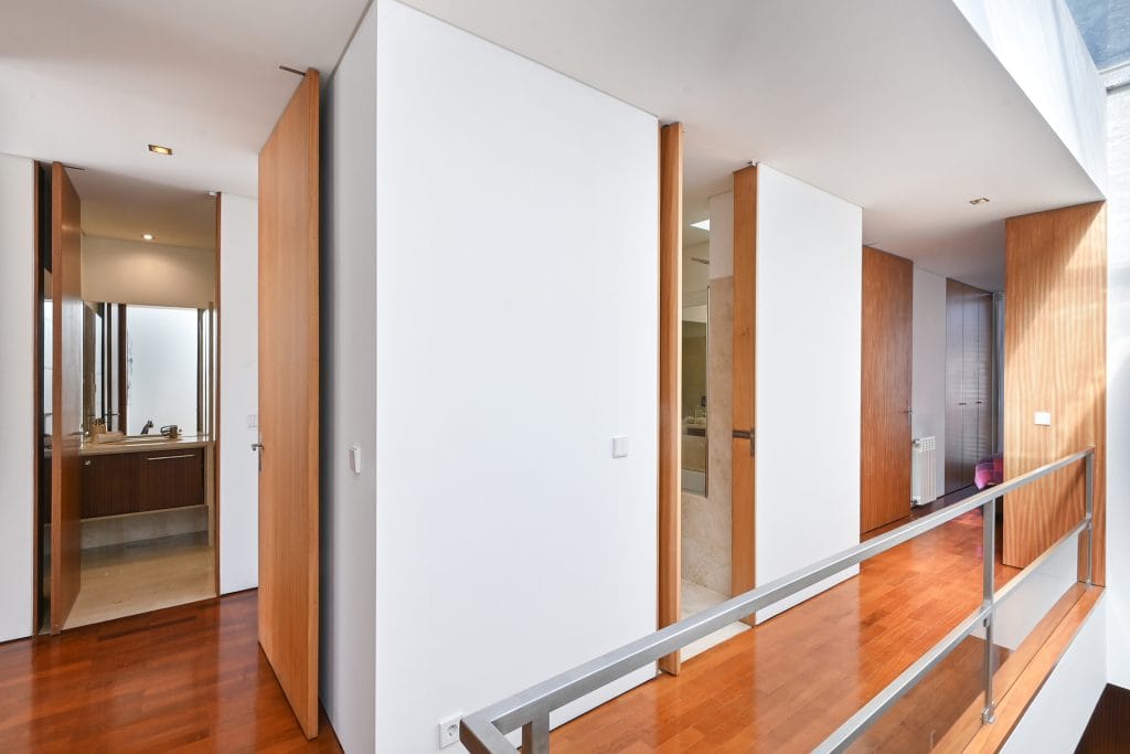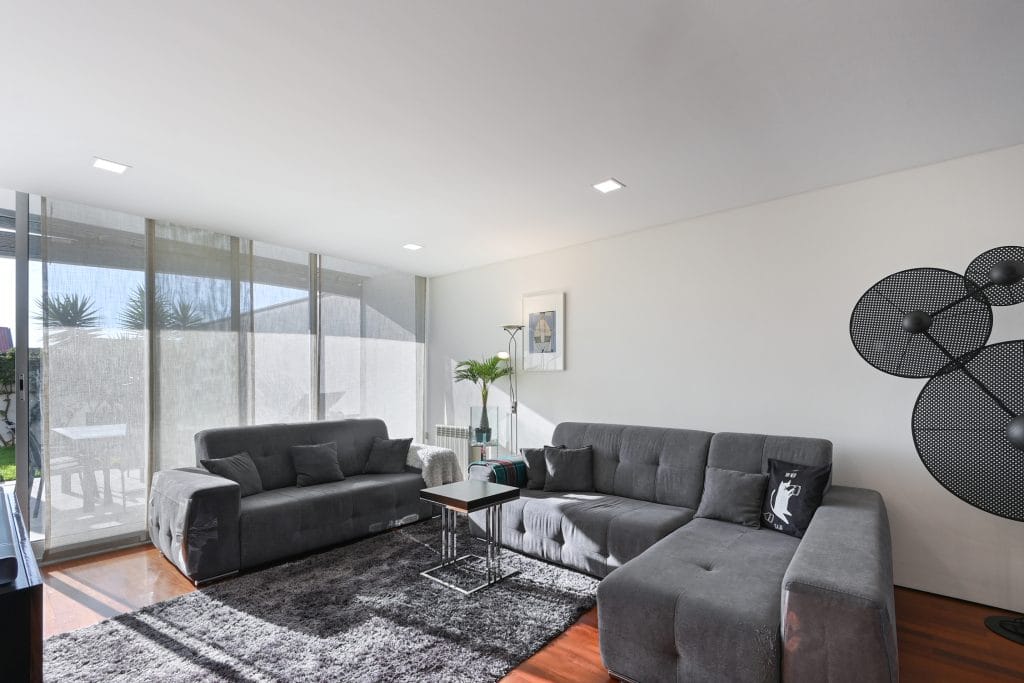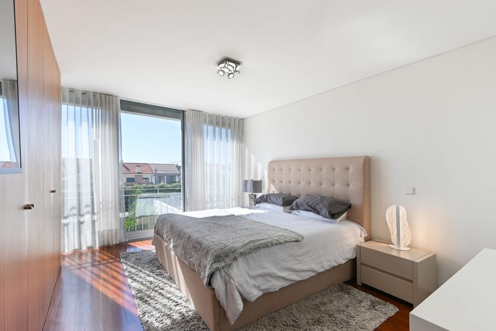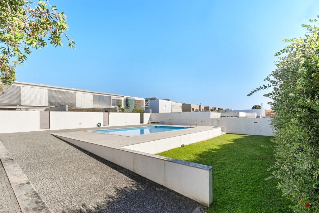The outdoor space of this townhouse includes a garden with a deck, perfect for relaxing and enjoying sunny days. This area connects directly to the condominium’s communal pool, a feature that enhances the exclusive lifestyle offered by this property. The location is one of the main highlights of this townhouse, just a few steps from Pedras do Corgo Beach and with quick access to the A28, ideal for those who value convenience and proximity to the sea.