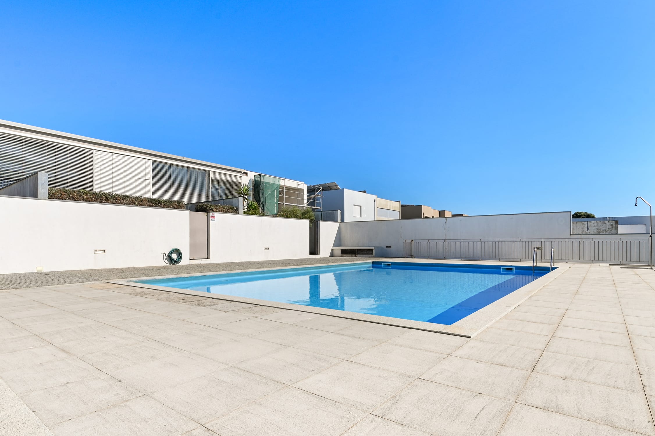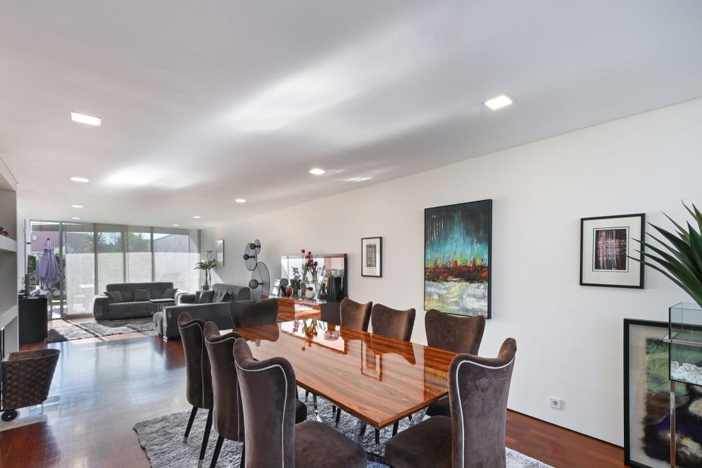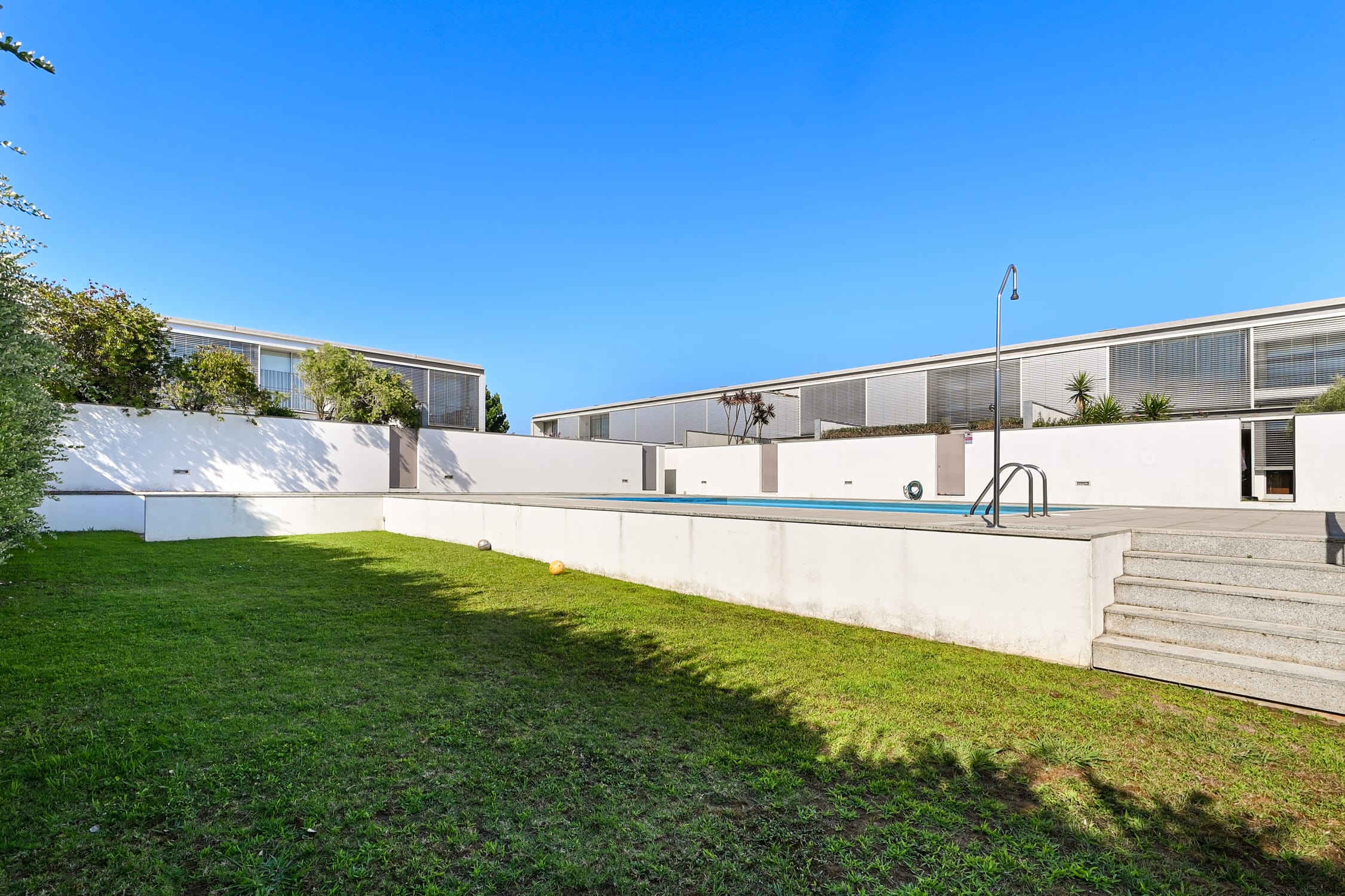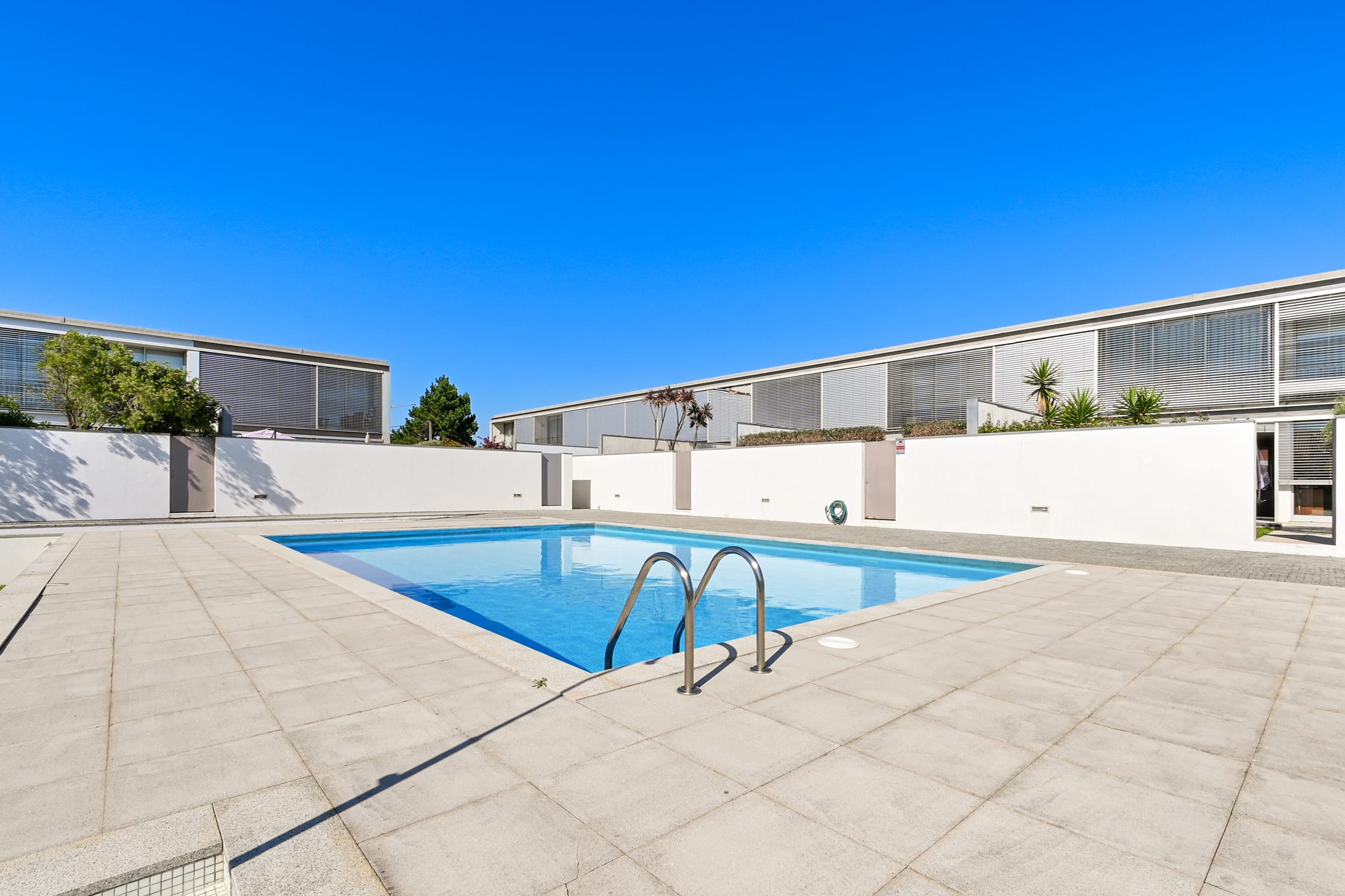 The outdoor space of this townhouse includes a garden with a deck, perfect for relaxing and enjoying sunny days. This area connects directly to the condominium’s communal pool, a feature that enhances the exclusive lifestyle offered by this property. The location is one of the main highlights of this townhouse, just a few steps from Pedras do Corgo Beach and with quick access to the A28, ideal for those who value convenience and proximity to the sea.