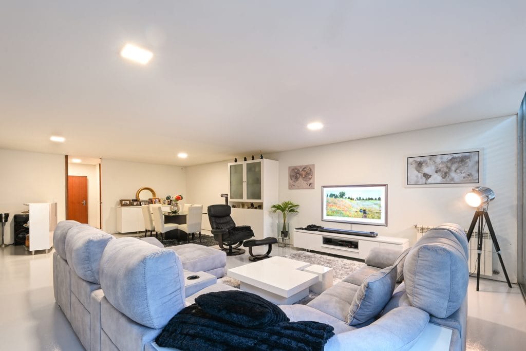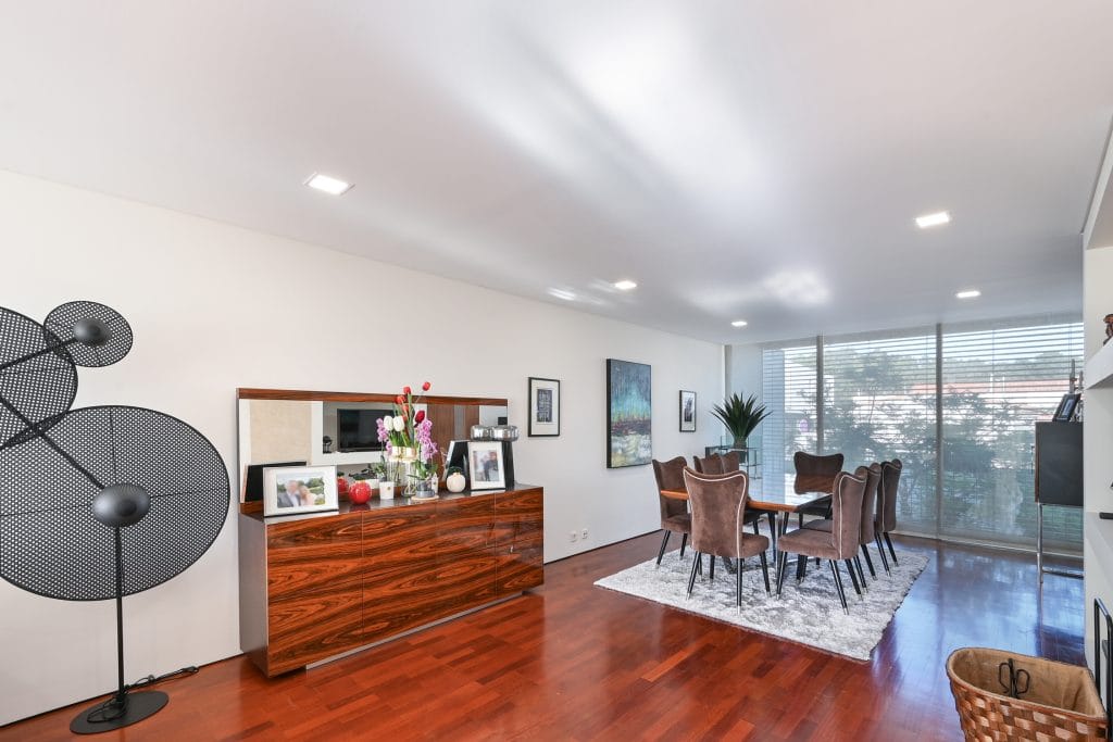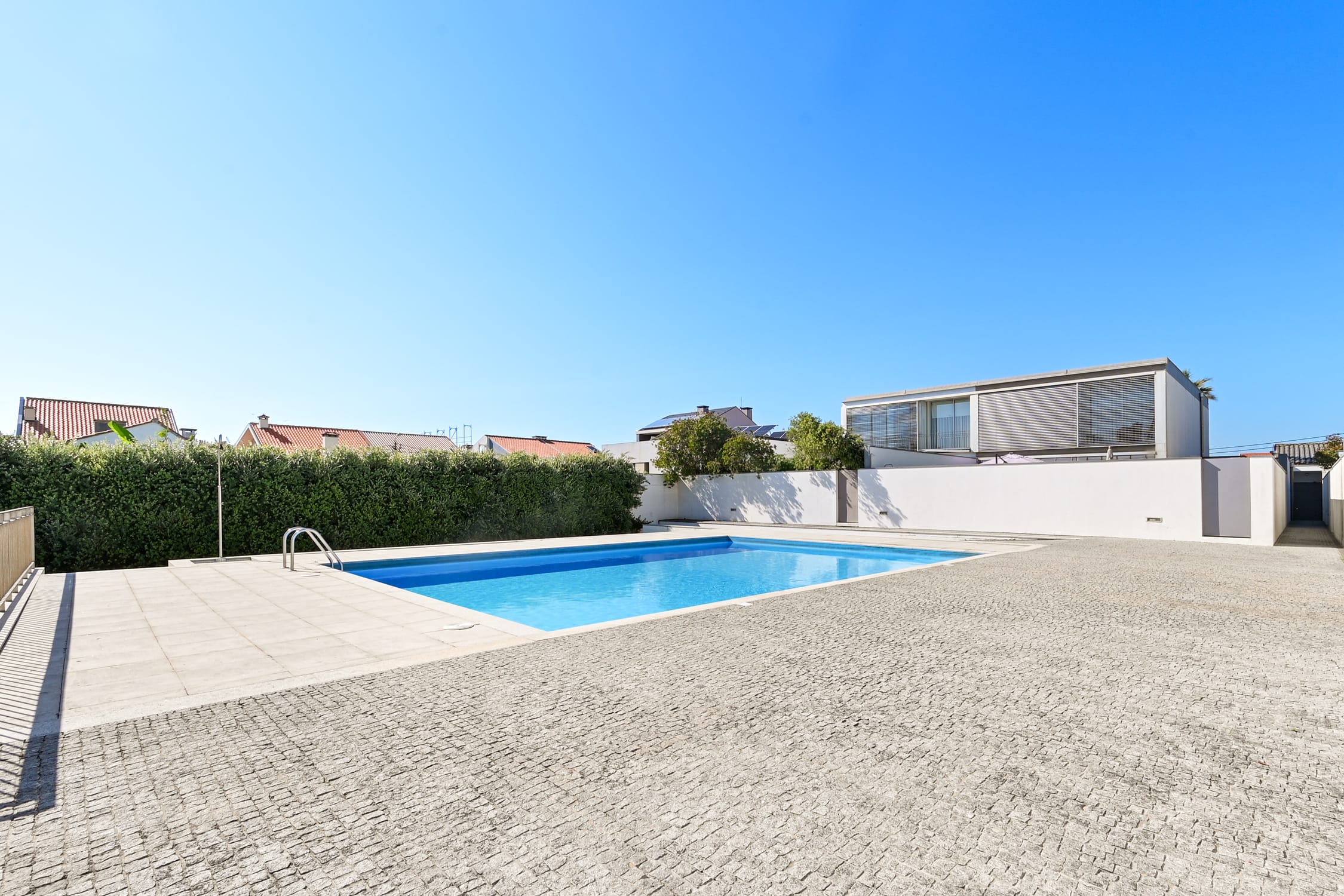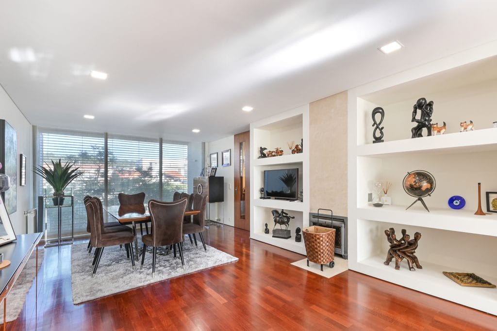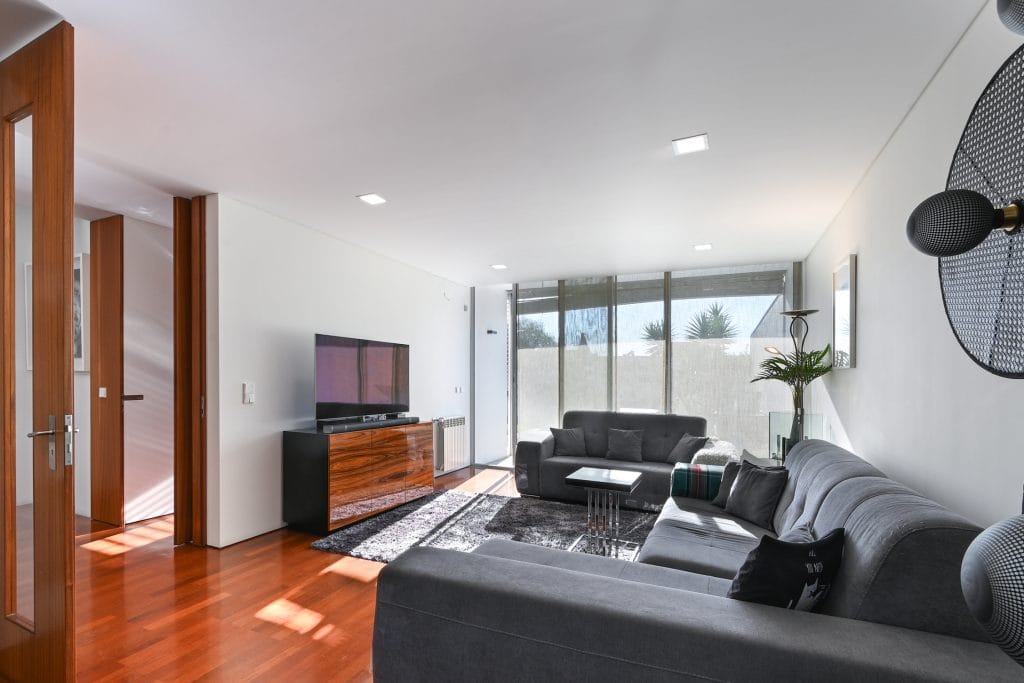 The outdoor space of this townhouse includes a garden with a deck, perfect for relaxing and enjoying sunny days. This area connects directly to the condominium’s communal pool, a feature that enhances the exclusive lifestyle offered by this property. The location is one of the main highlights of this townhouse, just a few steps from Pedras do Corgo Beach and with quick access to the A28, ideal for those who value convenience and proximity to the sea.