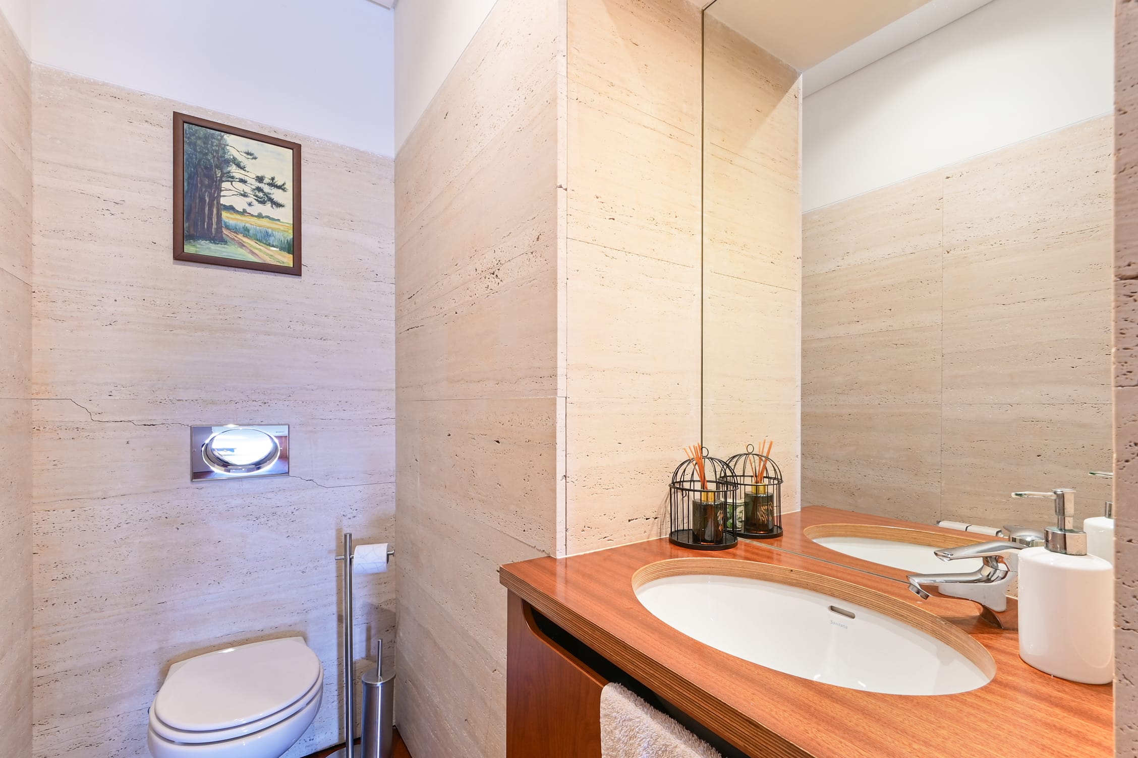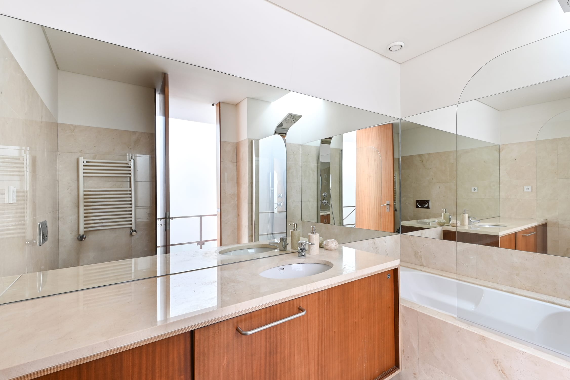 The modern and functional kitchen is fully equipped, offering everything needed to prepare meals with ease and refinement. The bathrooms stand out with their natural stone finishes, creating a luxurious environment, and the high-quality showers ensure comfort. Every detail has been considered to provide a sophisticated experience, including built-in wardrobes and full-height doors that add elegance and practicality to the townhouse.